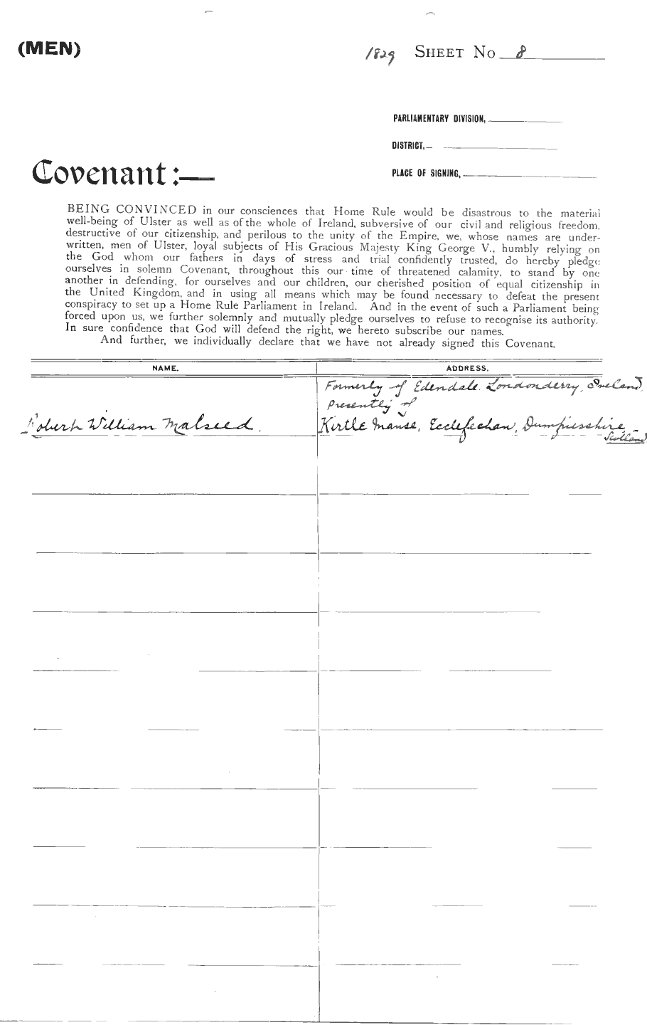 Malseed / Molseed / Maultsaid signers of the Ulster Covenant.